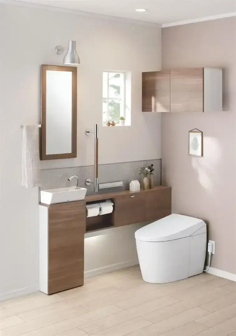 収納や手洗いカウンターがセットになったタイプ。メーカーによって「レストパル」「収納一体型」などと呼ばれます。