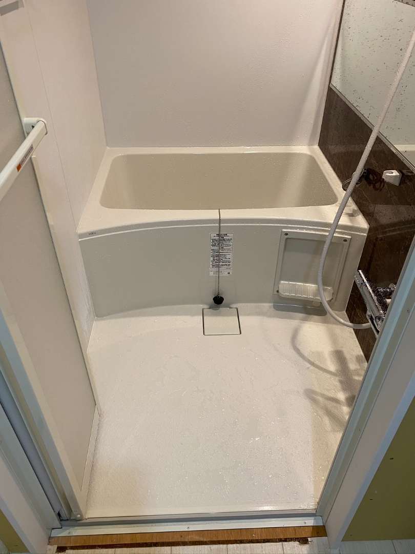 経年劣化した浴室をリニューアル。最新のユニットバスと高性能シャワーを導入し、快適性と省エネを実現。カビ対策として換気扇を強化し、バリアフリー対応の手すりも設置しました。